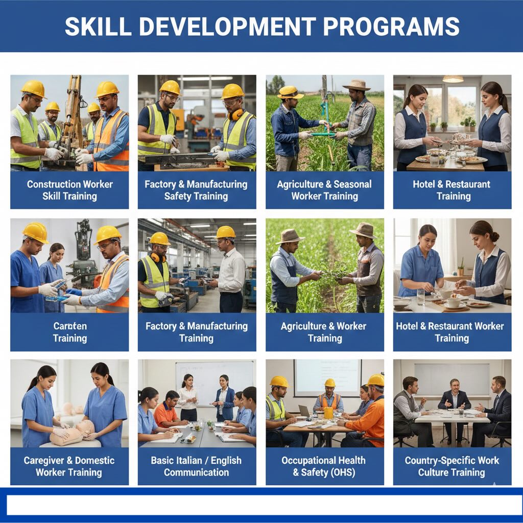 Our Training Programs are designed to meet the skill, safety, and compliance requirements of various countries including Italy, Romania, Poland, Croatia, Hungary, Germany, Middle East, and other destination countries.